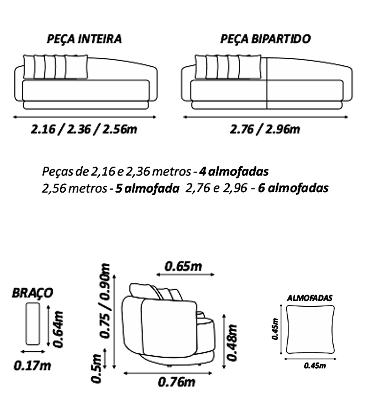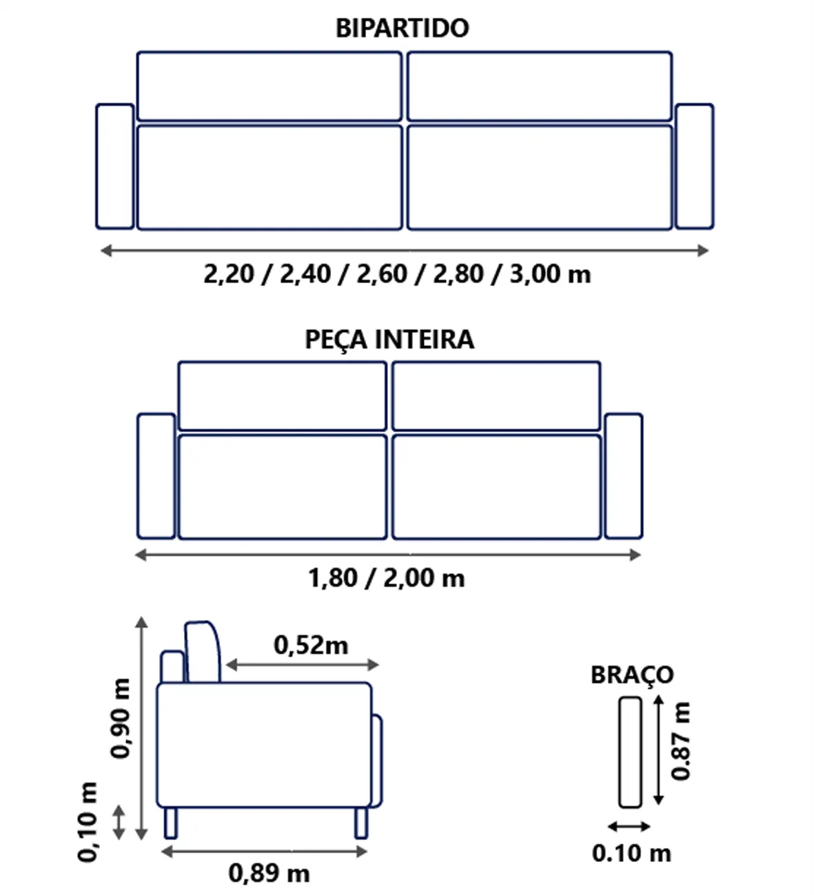 Aqui temos uma grande variedade de sofás com diversas medidas, para salas e ambientes pequenos, médios e grandes e apartamentos.