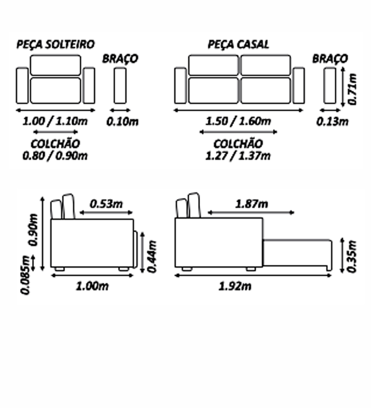 Aqui temos uma grande variedade de sofás com diversas medidas, para salas e ambientes pequenos, médios e grandes e apartamentos.